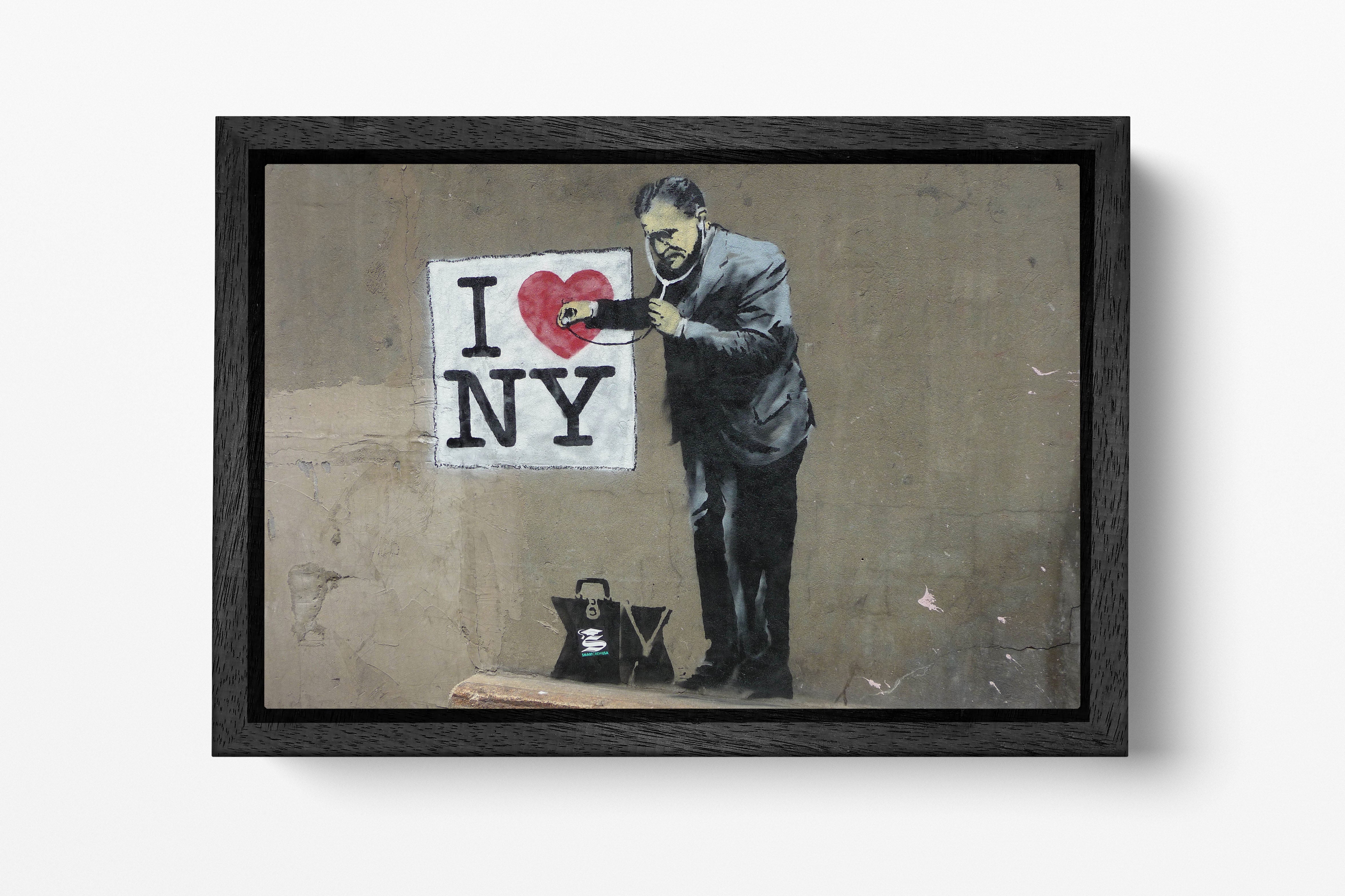 I Love New York By Banksy Wall Art Leather Print Floating Frame Made In Italy